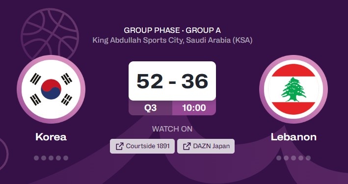 22记三分浇灭黎巴嫩!韩国八强资格赛将战关岛 胜者对阵中国