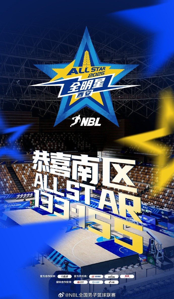 nbl全明星全场比赛结束!北区明星队133:155南区明星队。恭喜南区明星队!...