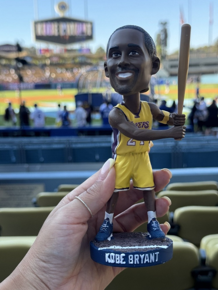 做得几分像?道奇队主场给每位观众送出科比的摇头娃娃