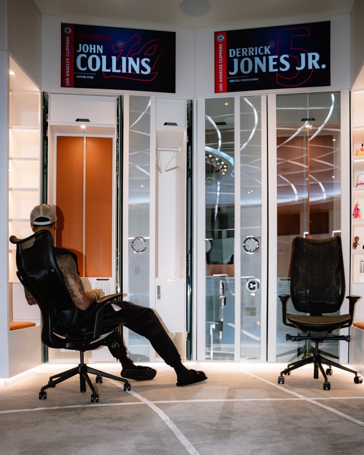 8月10日讯 今天,快船在官推上晒出了约翰-科林斯和小德里克-琼斯的更衣柜。可以看到,这两名锋线悍将更衣柜紧挨着。...