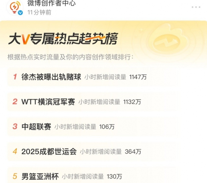 热度差!徐杰被曝出轨赌球小时新增阅读量1147万 男篮亚洲杯130万