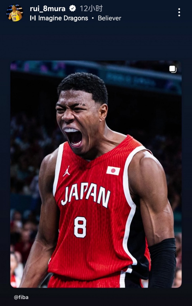 8月9日讯 男篮亚洲杯,日本男篮70-78不敌伊朗男篮。赛后,湖人球星八村塁更新社媒动态,转发了一张自己的国家队怒吼照,...