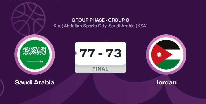 中国男篮同组战况:拉赫曼25+8+7 沙特男篮77比73力克约旦