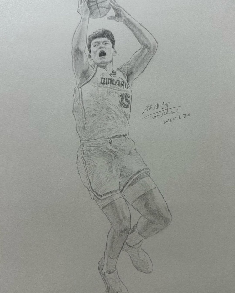 吧友们看看有几分像?某青岛网友绘制杨瀚森素描图