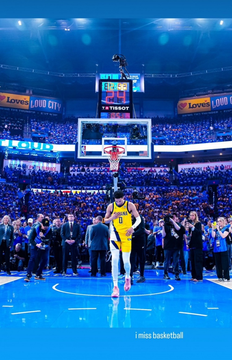 早日回归🙏哈利伯顿IG转发赛场照:我想念篮球🏀