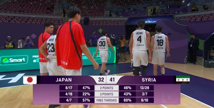 又一个超级爆冷预演?日本男篮半场落后叙利亚男篮9分