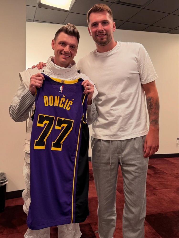 后街男孩获赠东契奇的签名球衣和球星卡 还合影留念