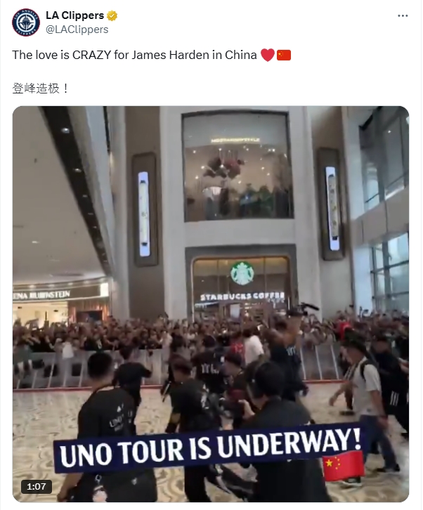 快船官推用中文写“登峰造极!”:中国球迷对哈登的爱太疯狂了!