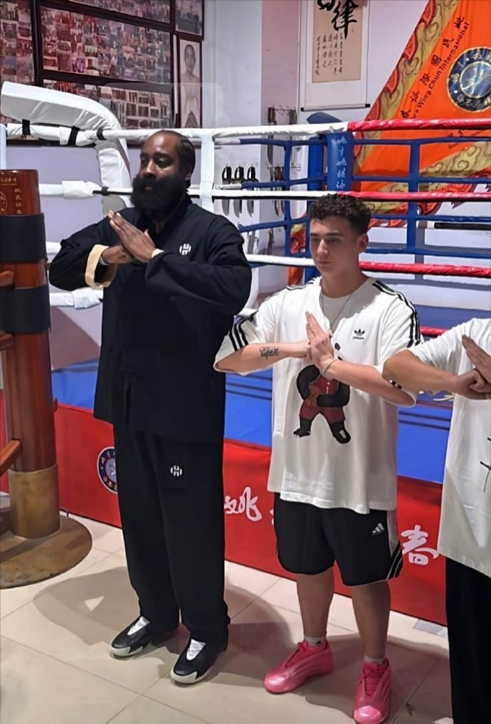 整挺好😎哈登中国行首站现身广州 身穿唐装体验咏春拳