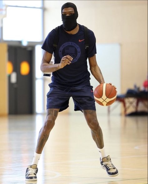 你热不热?😂杜兰特今日戴着忍者头套训练