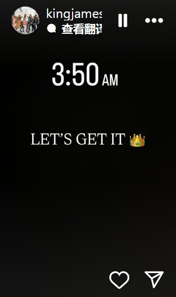 起床更早了!詹姆斯社媒发布动态:凌晨3点50分就准备训练👑