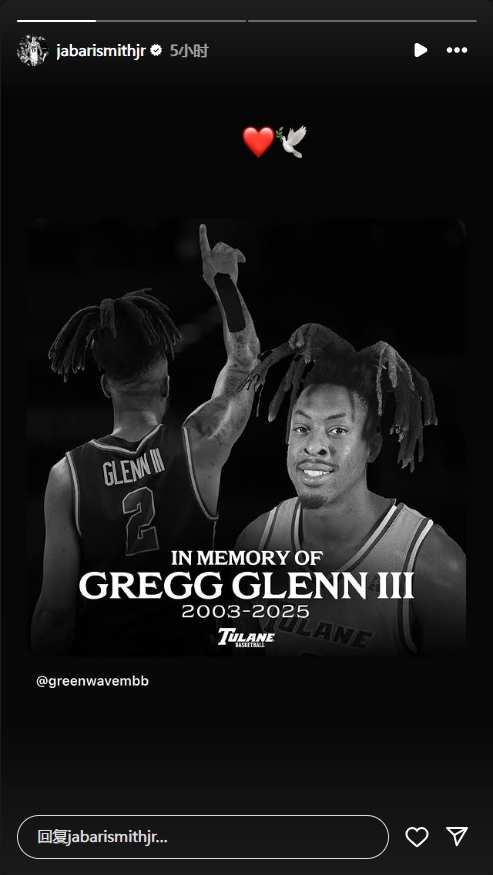 杜兰大学22岁大前锋格伦意外去世 小贾巴里-史密斯转发哀悼