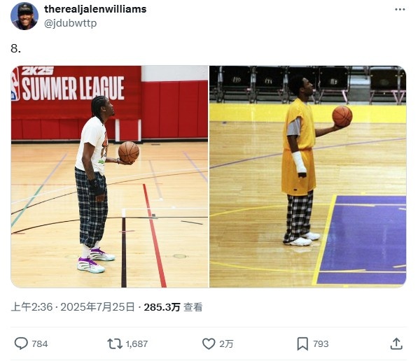7月25日讯 雷霆球员杰伦-威廉姆斯更新社媒。他晒出了自己和科比练习左手罚球的对比图,并写道:8号。今年4月份杰伦-威廉...