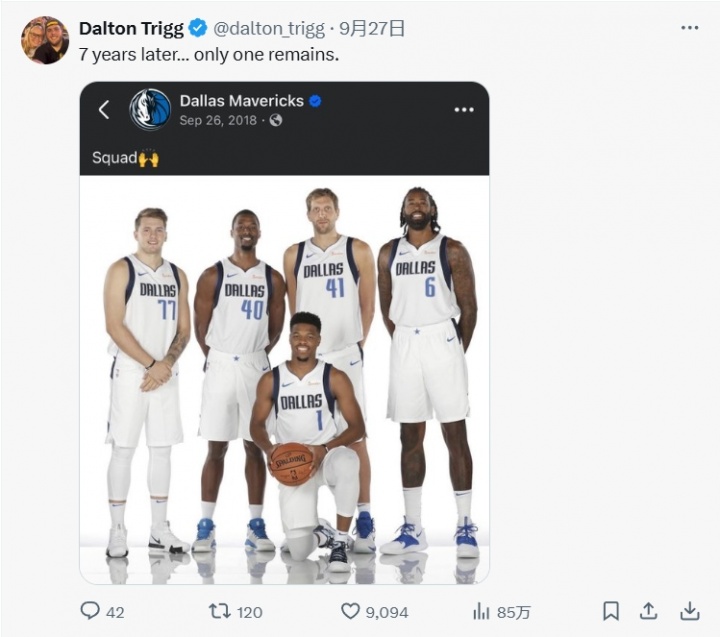 独行侠记者感慨:7年之后 图里这5人仅剩1人还在独行侠