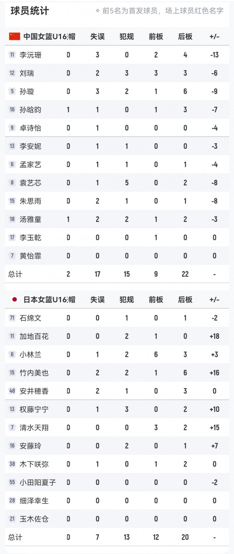 任重道远!中国U16女篮全场出现多达17次失误 日本队仅7次