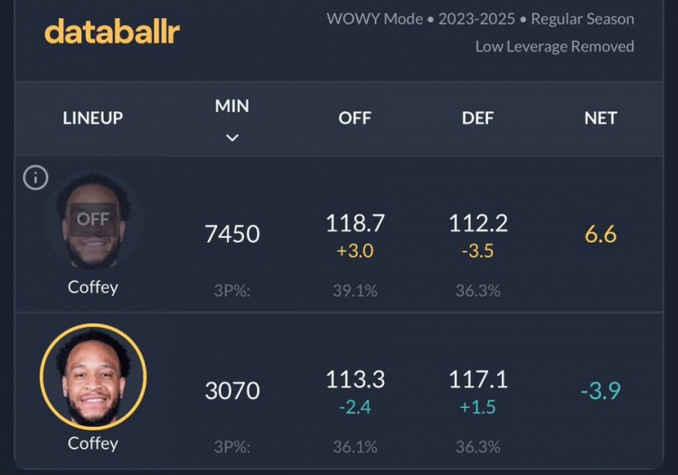 反向影响力!科菲快船生涯在场时球队净效率-3.9 不在场时+6.6