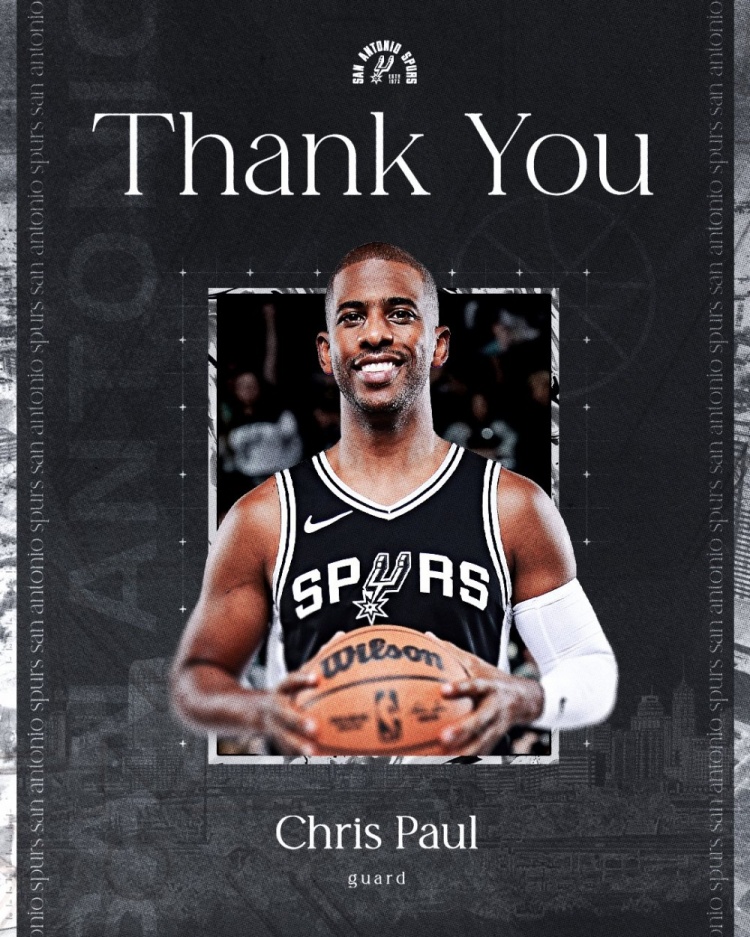马刺致谢保罗:谢谢你的领导和影响力 祝你回LA一切顺利 🖤🤍