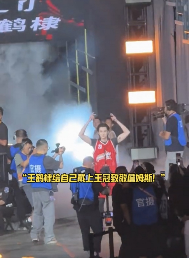 王鹤棣在成都参加聚星名人赛 出场时做出戴王冠动作致敬詹姆斯