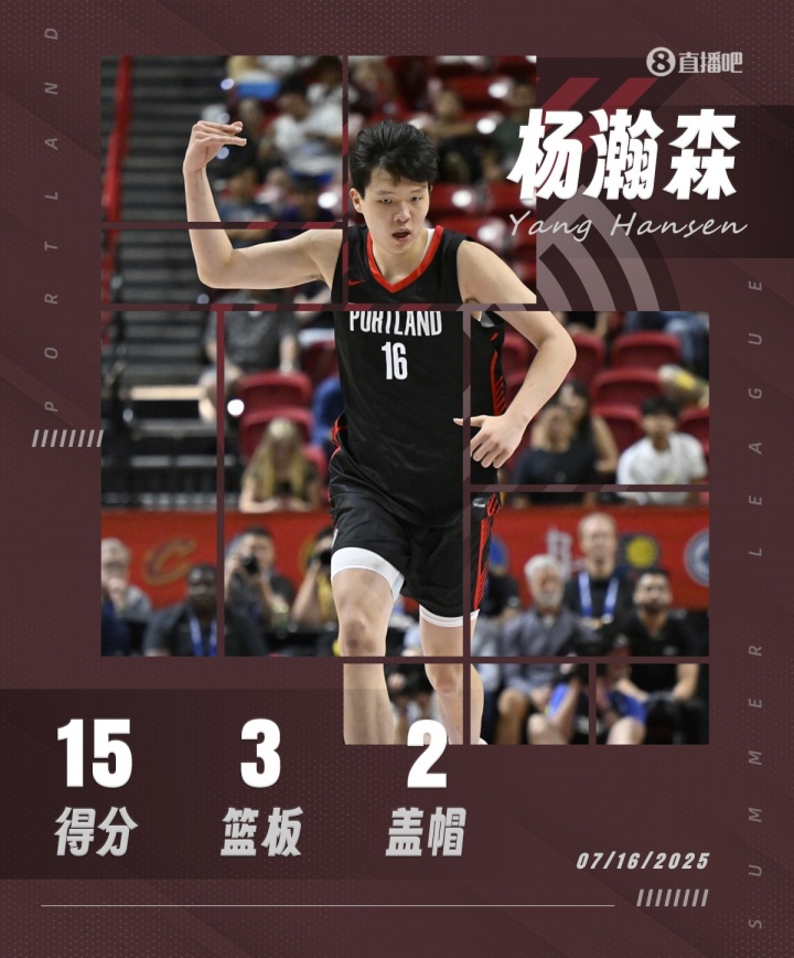 7月16日讯 NBA夏季联赛,开拓者93-87力克鹈鹕。此役,杨瀚森13中6,其中三分6中3,砍下15分3板2助1断2帽...