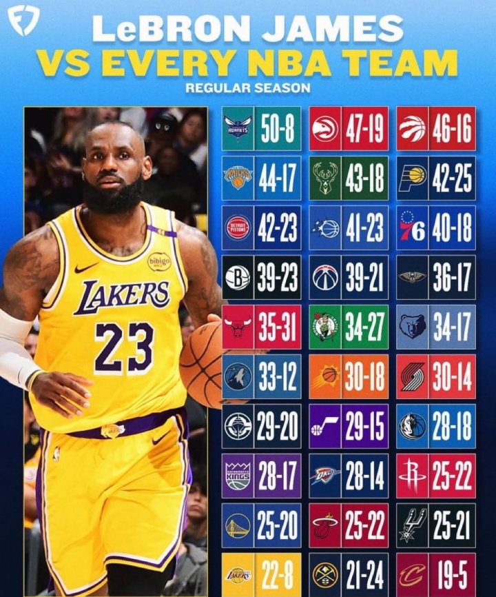 👀詹姆斯常规赛VS各队战绩:勇士+5 骑士+14 仅对掘金为负!