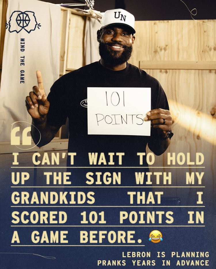 玩梗要彻底🤣《球场大脑》官方晒出詹姆斯举起“101分”字牌照