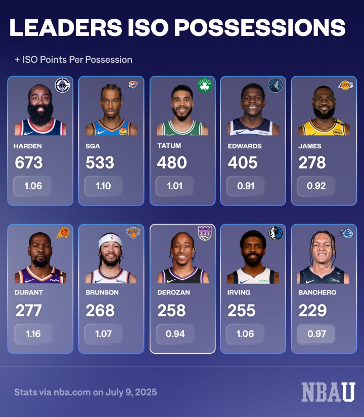 07月09日讯 今日,美媒NBA University在社交媒体上晒出了上赛季NBA单挑相关数据:“24-25赛季单挑回...