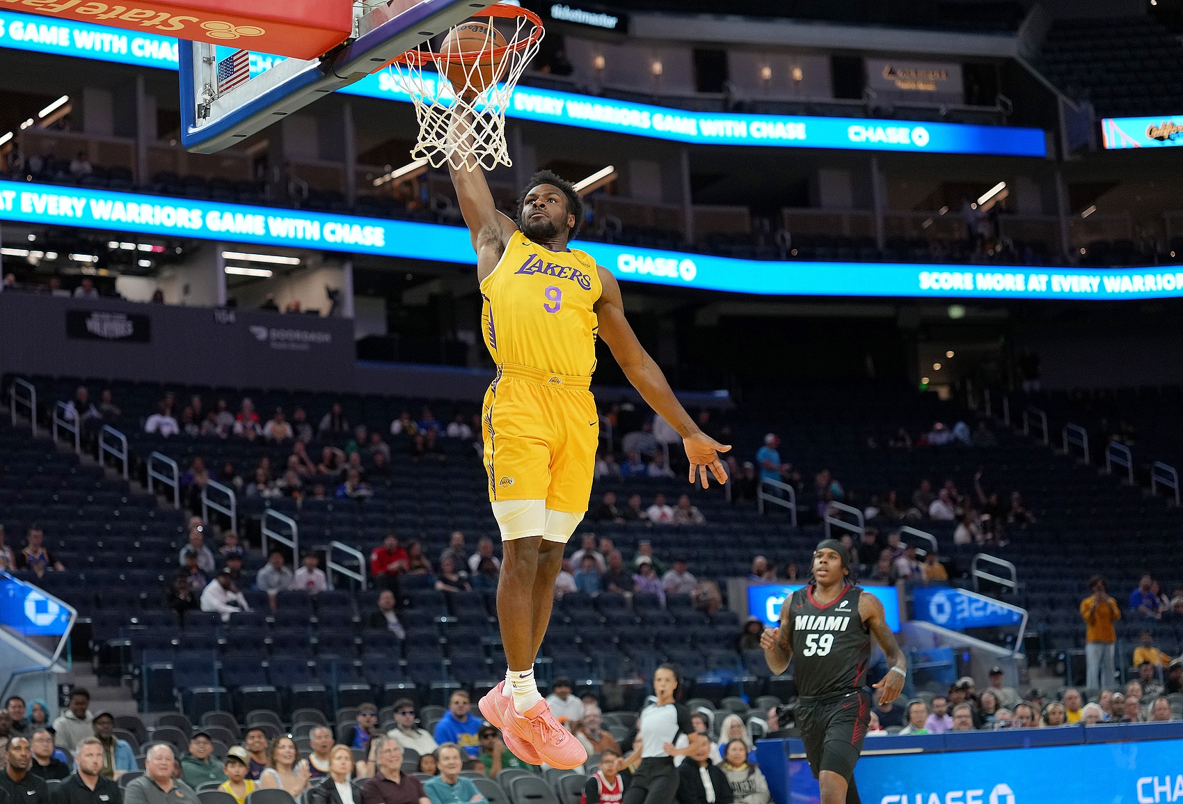 7月9日讯 NBA夏季联赛,湖人半场42-47落后马刺。上半场,湖人球员布朗尼表现一般,进攻端手感不算好不过比较全能,在...