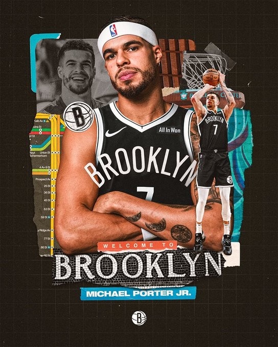7月9日讯 篮网官宣了和掘金的交易,小波特正式加入球队。在欢迎海报中,小波特穿篮网7号球衣,球衣记者Etienne Ca...