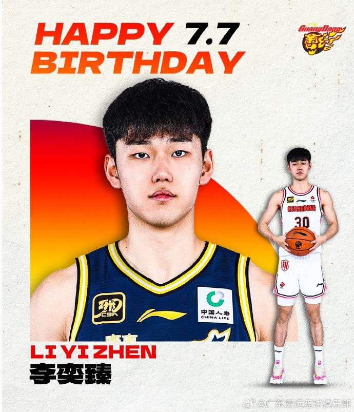 7月7日讯 今天是小将李奕臻20岁生日,广东男篮在官博上向他送上了生日祝福。“祝小李2️⃣0️⃣岁生日快乐🎂🎂🎂健康涨球...