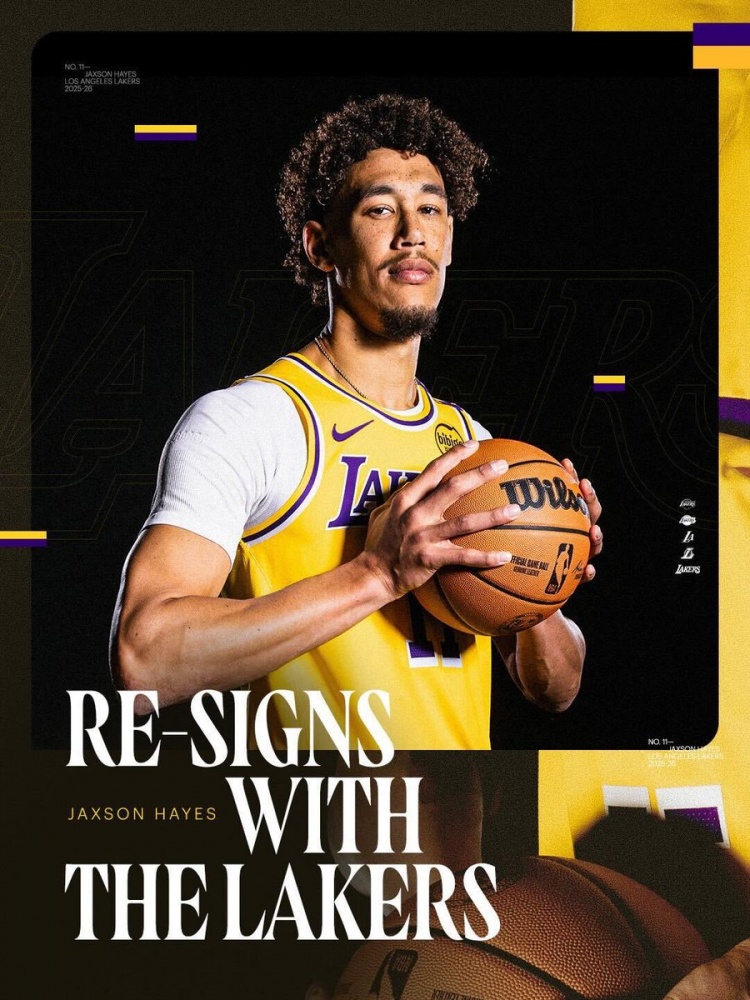 一年合同345万&有交易否决权!湖人官方:球队与中锋海斯完成续约