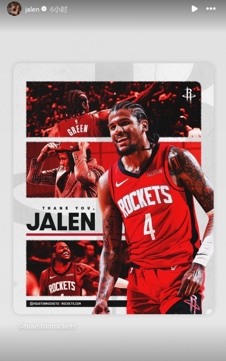 杰伦-格林:感谢休斯敦从第一天开始给我的支持与爱 情谊永存🖤