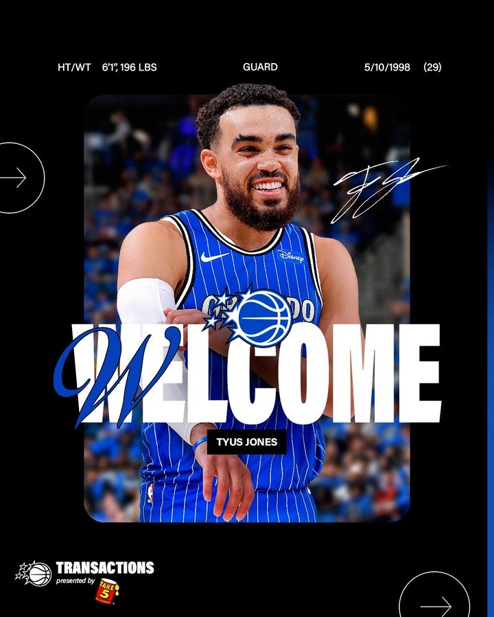 1年700万&穿2号球衣!魔术官方:球队签下后卫泰厄斯-琼斯