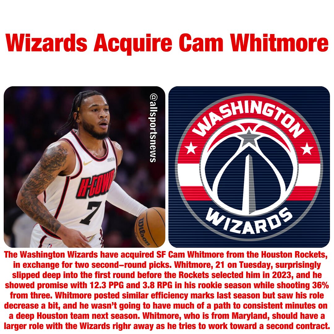 7月6日讯 据Shams报道,火箭将惠特摩尔交易至奇才,换来两个次轮签。TheAthletic记者Josh Robbin...
