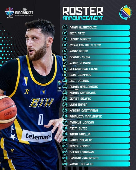 弩机&加尔扎领衔波黑欧锦赛24人名单 月底和中国男篮打两场热身