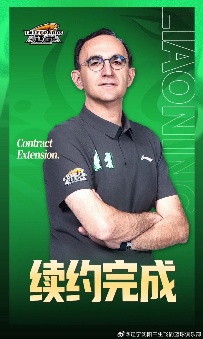 辽宁男篮正式与乌戈教练完成三年续约 期待突破新高&续写荣誉篇章
