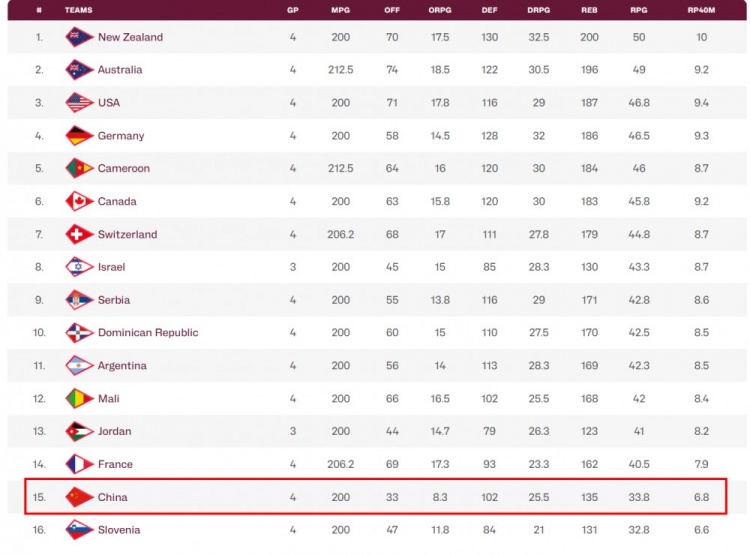 7月3日讯 男篮U19世界杯基本已打完八分之一决赛,在球队相关统计中,中国男篮的篮板球数据全面落后。其中前场板仅为33个...