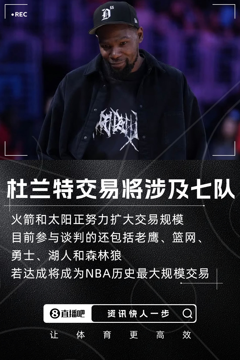 涉及鹰网勇湖狼🤯火箭&太阳正努力扩大杜兰特交易到创纪录的7队