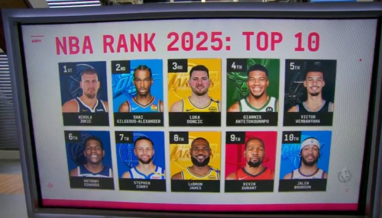 詹姆斯近15年ESPN百大排名:9次第一!现连续四年无缘前五