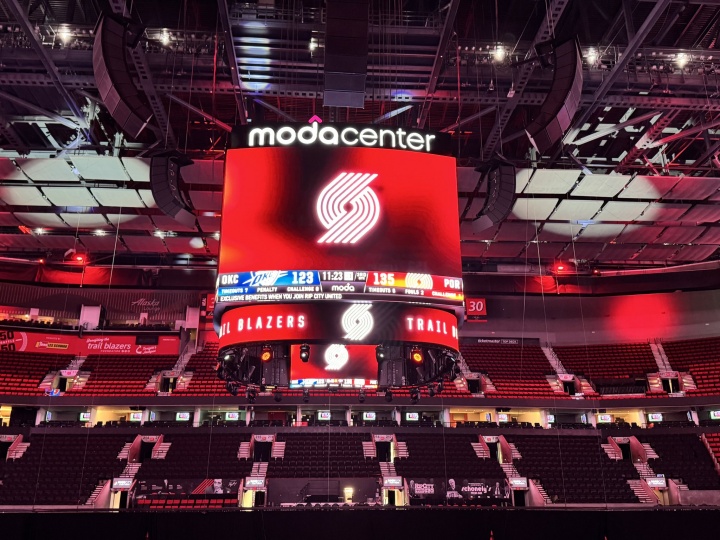 09月26日讯 一众开拓者媒体人今日晒出了摩达中心的设备升级。开拓者主场摩达中心近日公布了全新的中场大屏幕以及球场周边曲...