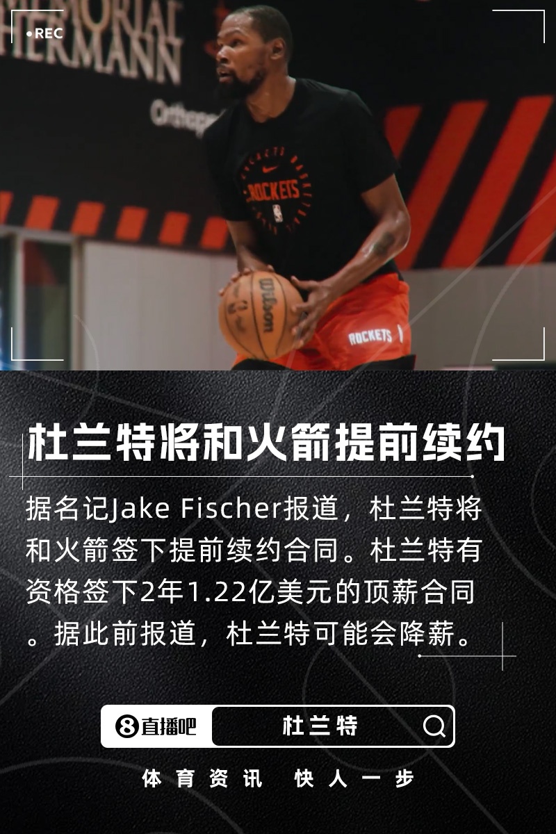 🚨2年1.22亿顶薪?名记:杜兰特将和火箭签下一份提前续约合同