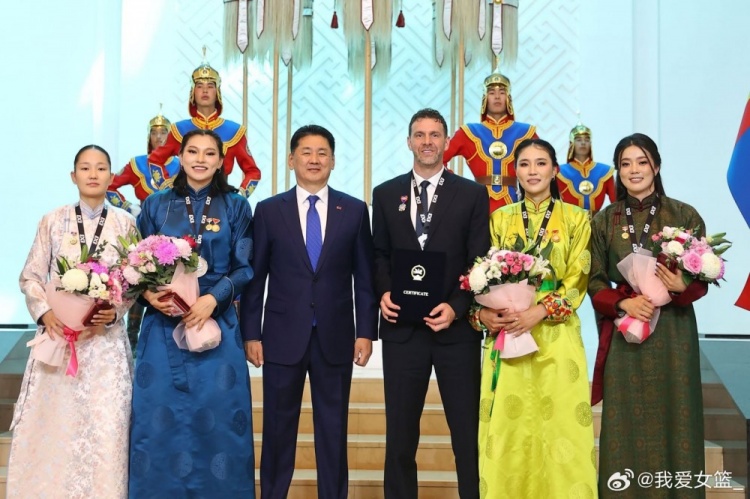 历史性获得世界亚军后 蒙古三人女篮受蒙古国总统接见