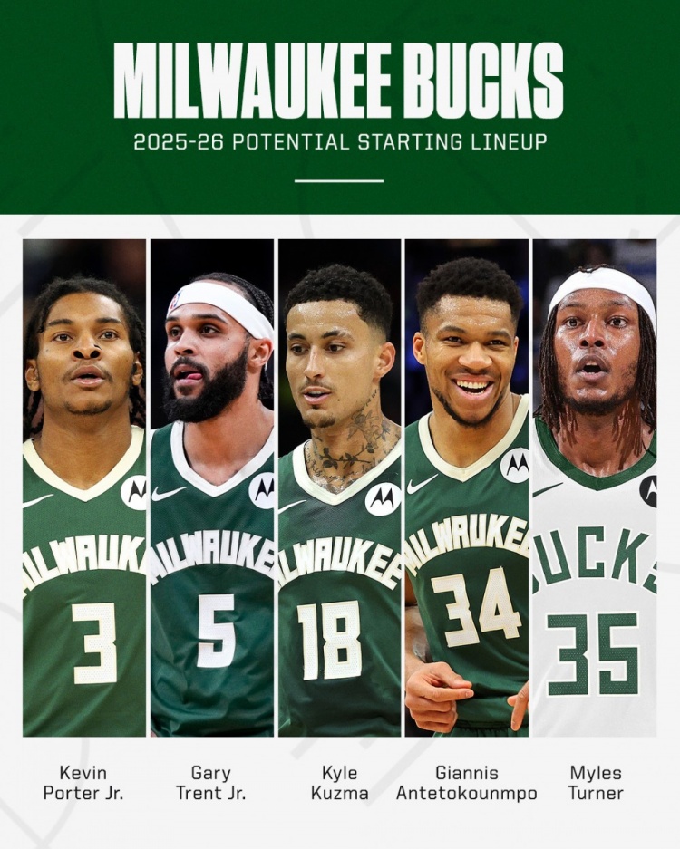 战力如何👀雄鹿潜在首发:字母哥+特纳+库兹马+小波特+小特伦特