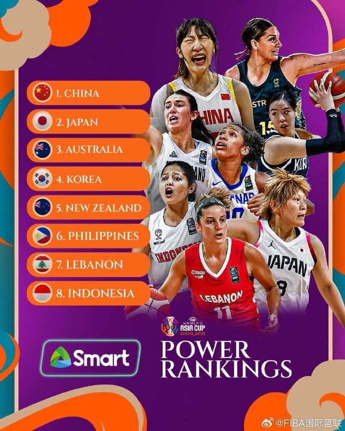 6月30日讯 今天,FIBA官方公布了女篮亚洲杯最新实力榜,中国女篮排在第1位。日本女篮和澳大利亚女篮紧随其后!2025...