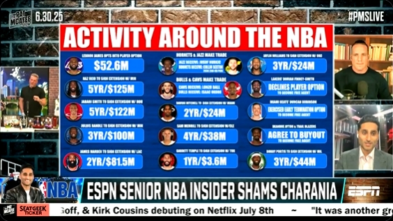 07月01日讯 名记Shams在播客节目《PatMcfeeShow》的直播中连续说了两遍:“今晚会有大交易,今晚会有大交...