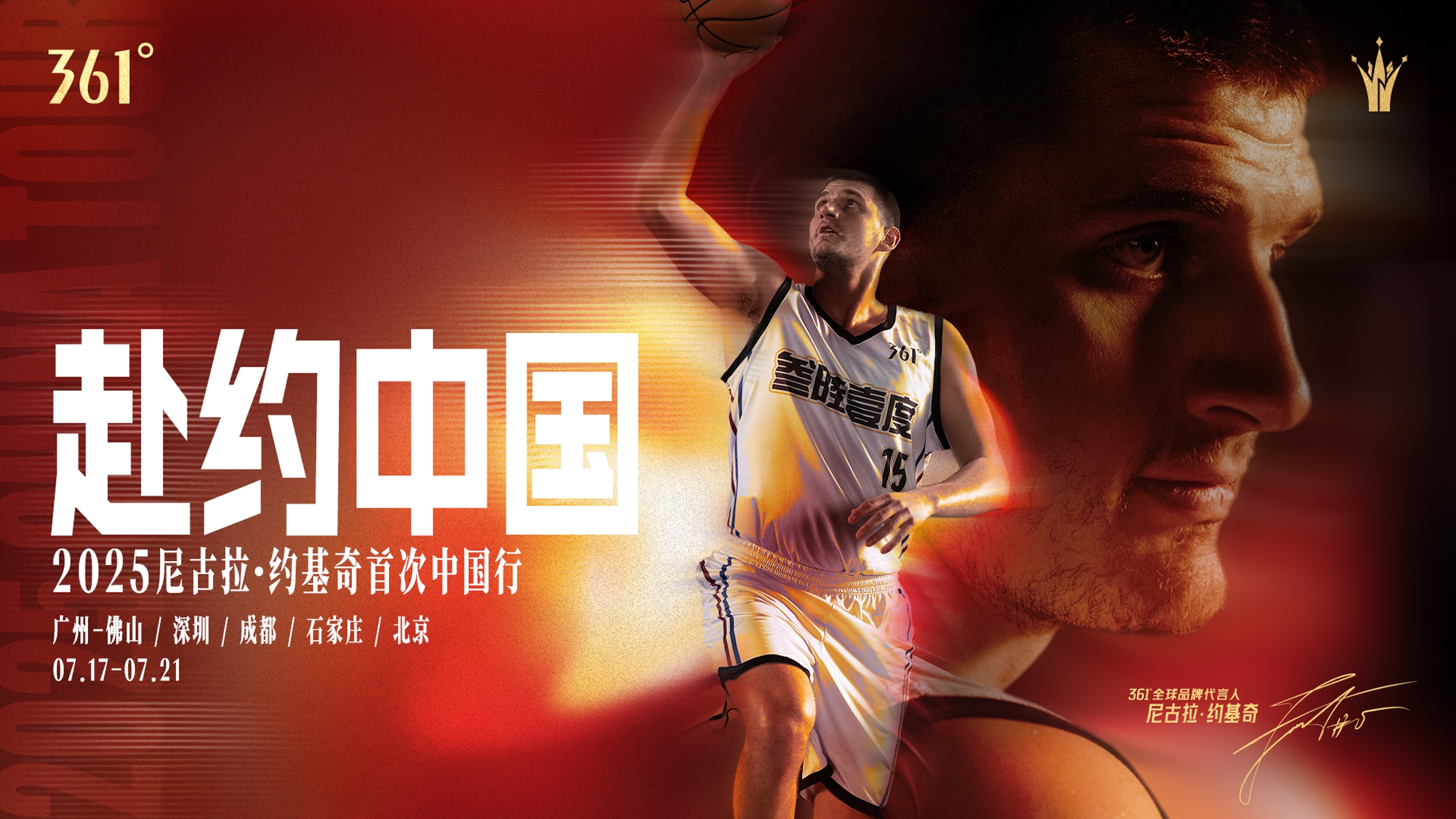 约老师,即将 #赴约中国361° 全球品牌代言人约基奇首次中国行07.17-07.21邀您共赴篮球之「约」#2025约基...