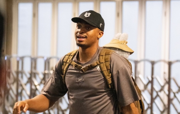 追赶潮流!凯尔登-约翰逊开启中国行 身背labubu成显眼包