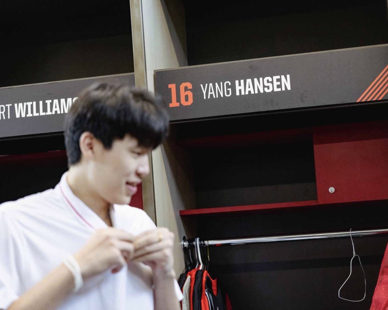 😊来看看杨瀚森在开拓者更衣室的位置 更衣柜挨着罗威
