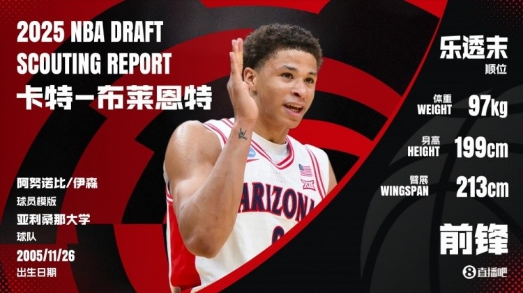 6月27日讯 2025年选秀大会,马刺用首轮14号签选中了亚利桑那大学的卡特-布莱恩特。在接受记者采访时,布莱恩特谈到了...