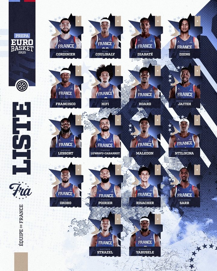 法国公布欧锦赛18人名单:文班戈贝尔富尼耶缺席 里萨谢萨尔领衔