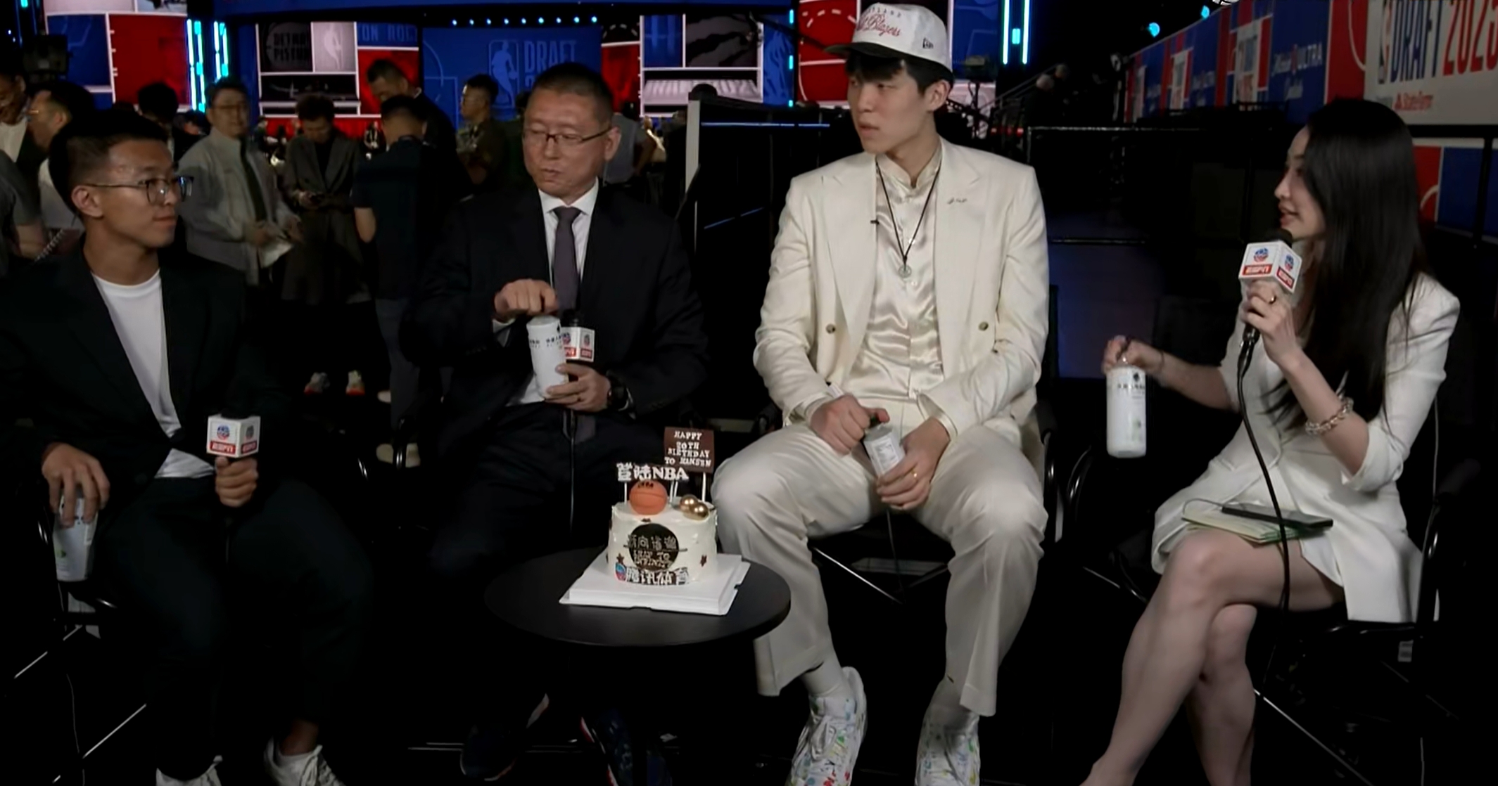 生日快乐!2025年NBA首轮16号秀杨瀚森在选秀大会现场过生日🎂